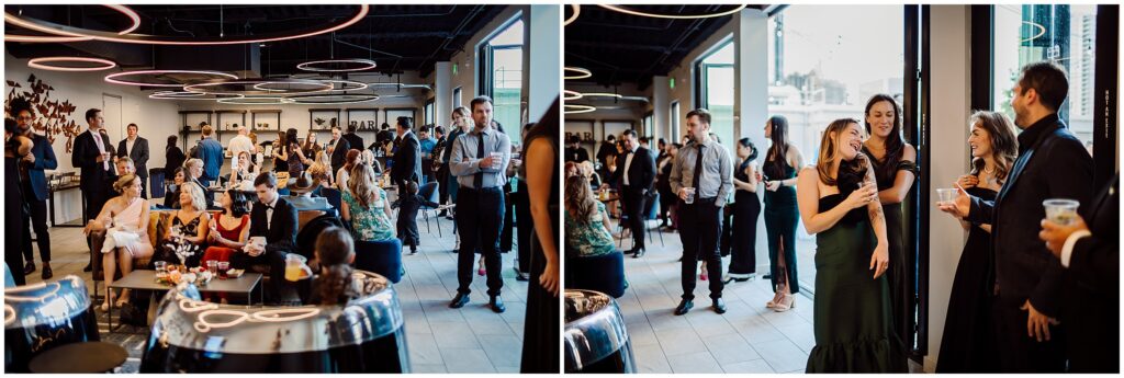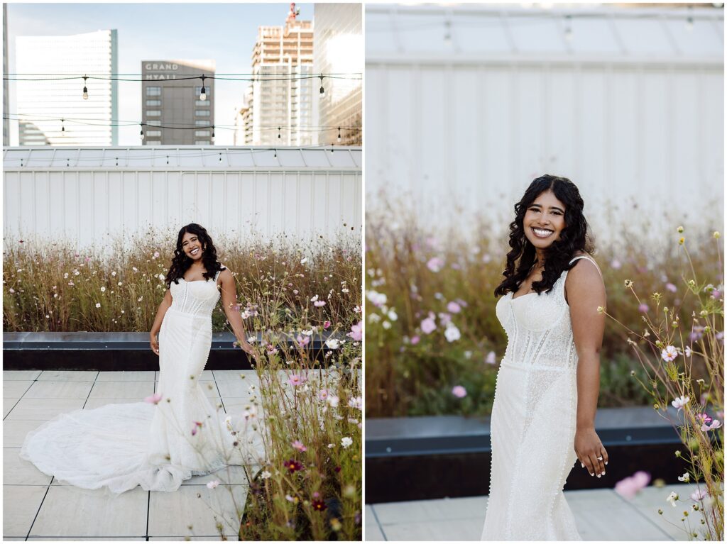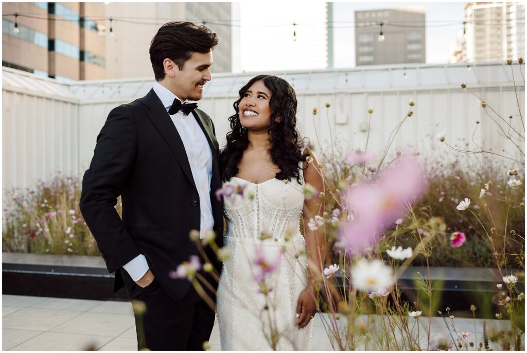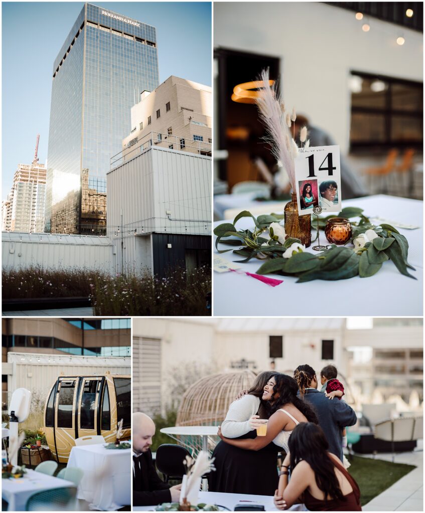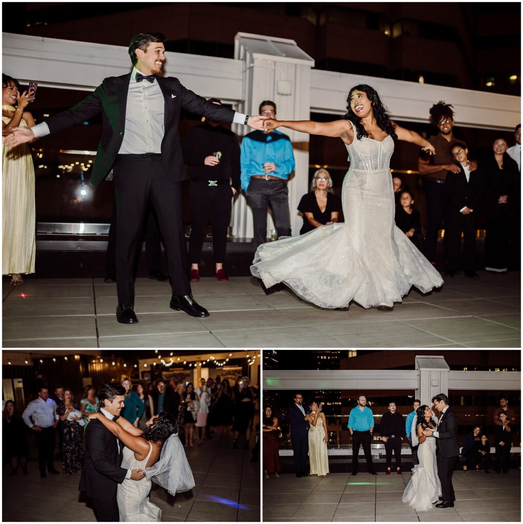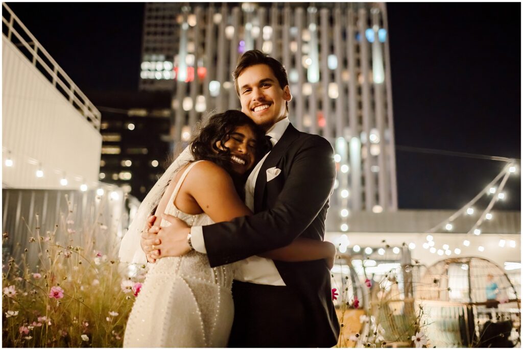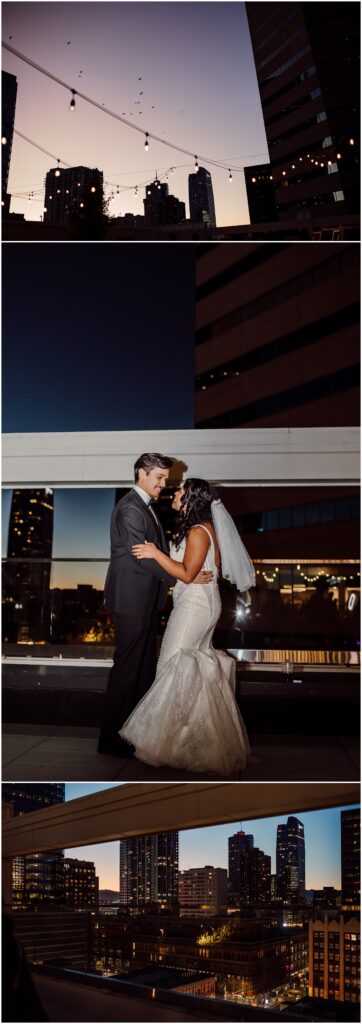 If you are looking for a gorgeous outdoor venue in the heart of downtown Denver, Rooftop 1630 is the vibe! Incredible city views, flower gardens that balance sleek urban vibes with vibrant pops of nature, indoor bar, with a whole wall of sliding windows to welcome our beautiful Colorado weather on nice days (aka most of them), this is a truly unique venue that was an absolute pleasure to photograph. After dinner and when the sun went down, it was time to dance, and dance we did!