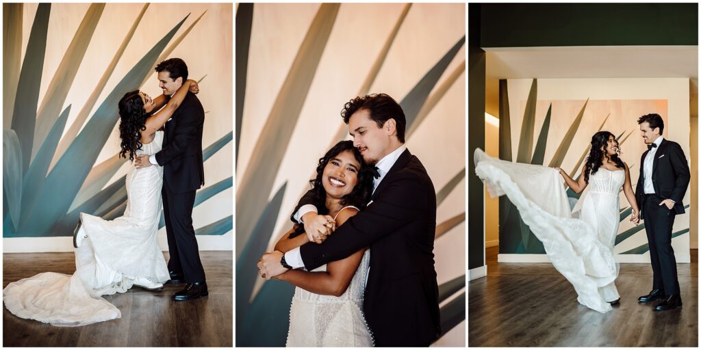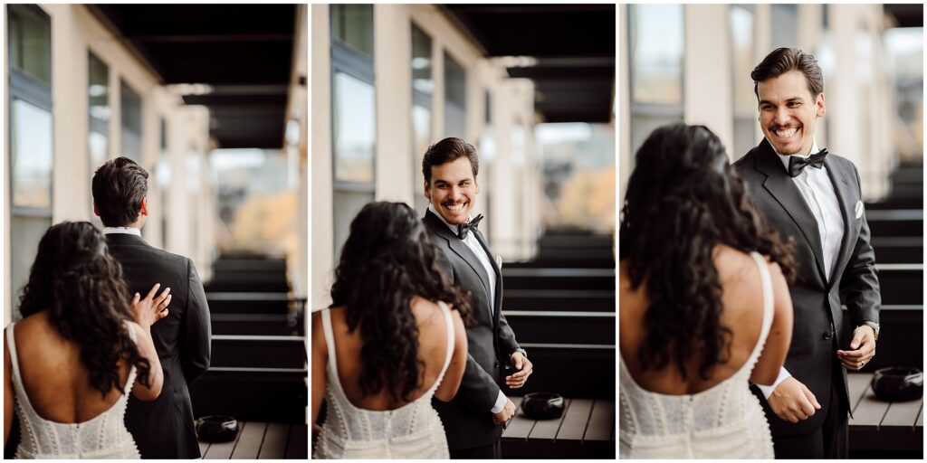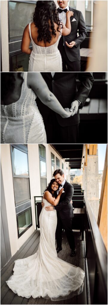 After everyone was finished getting glitzy for the party, Asia and Hunter had a sweet first look on the balcony of the Airbnb. Life tip: find you a man that looks at you like Hunter looked at Asia during this first look, you can’t beat that look of pure joy.