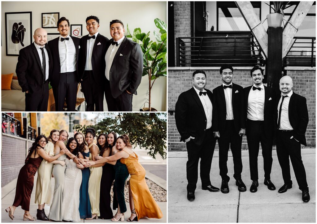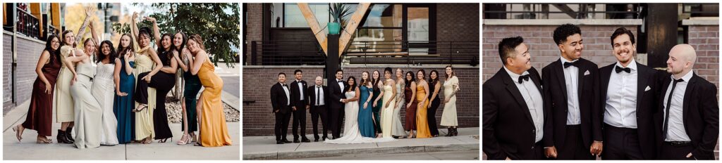After one of the best first looks ever, we headed down to the street for some group shots with their besties. All of the stylish ladies wore different complementary colors, which sure do make group photos pop, I love that look! When we were finished with the group photos and some romantics, we headed off to the venue so the real party could start!