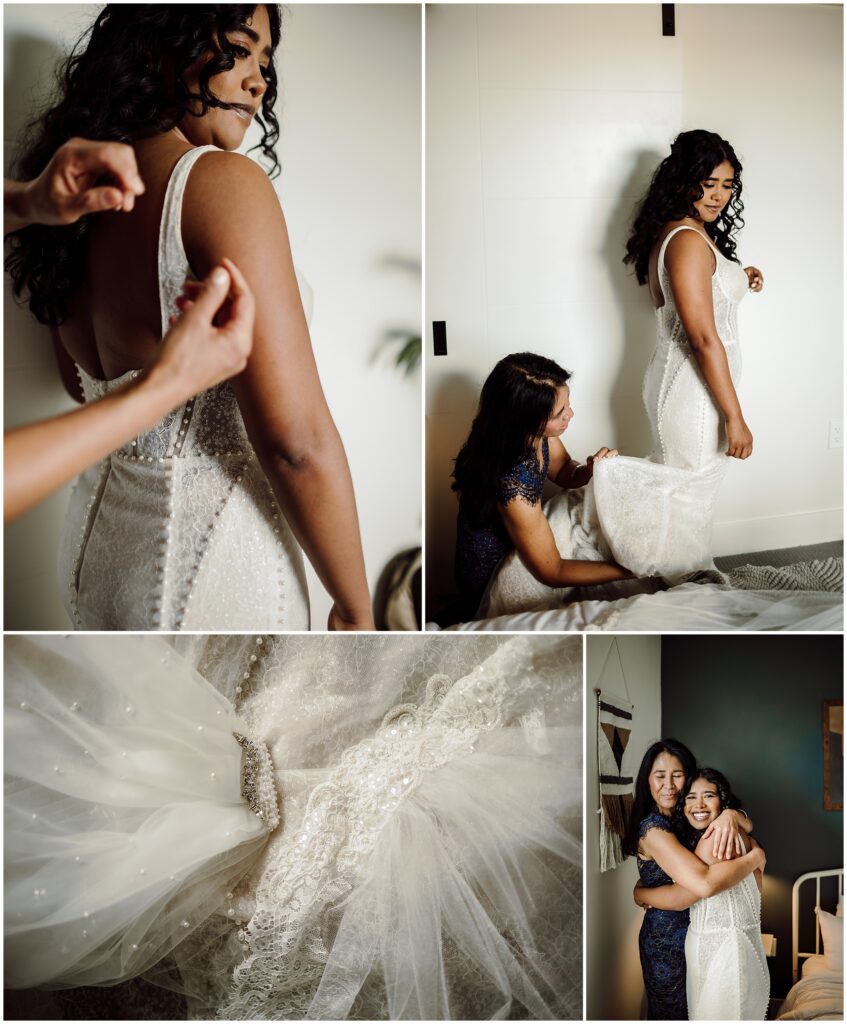 Since the legal work had already been done, all the pressure was off and the whole day felt laid back and relaxed, and just plain fun. Asia, Hunter, and all their besties got ready together at a sunny Airbnb in the Denver Highlands neighborhood. Asia’s mom Kelly, who is an incredibly talented seamstress, altered Asia’s dress to fit her like a glove, and made her beautiful veil. She altered my and my sister’s dresses, and lots of my past brides. Holler at me if you need her number, she is the bees knees!
